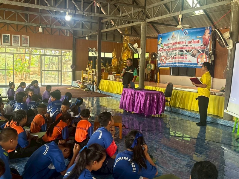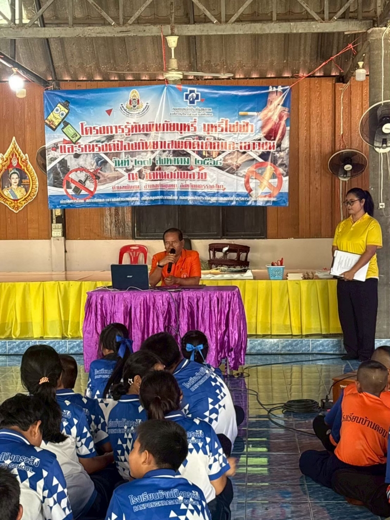 นายจเร เสขุนทด นายกองค์การบริหารส่วนตำบลพันชนะ ประธานเปิดโครงการรู้ทันพิษภัย บุหรี่ บุหรี่ไฟฟ้าและรณรงค์ป้องกันยาเสพติดเด็กและเยาวชน ประจำปีงบประมาณ 2568 ณ วัดหนองพลวง ตำบลพันชนะ อำเภอด่านขุนทด จังหวัดนครราชสีมา
