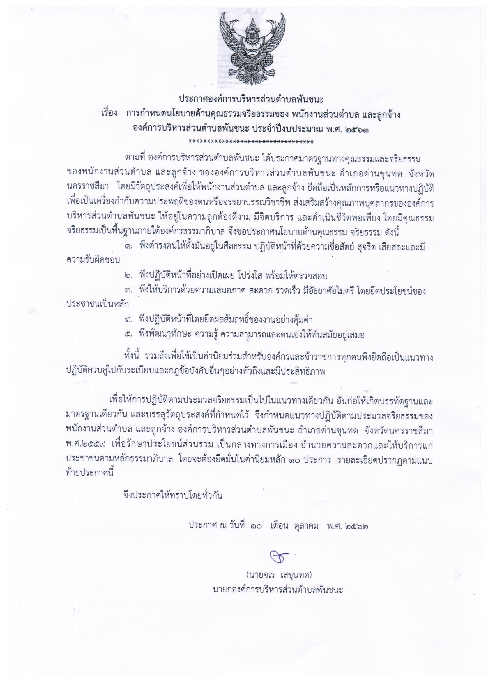 กำหนดนโยบายส่งเสริมด้านคุณธรรมจริยธรรม