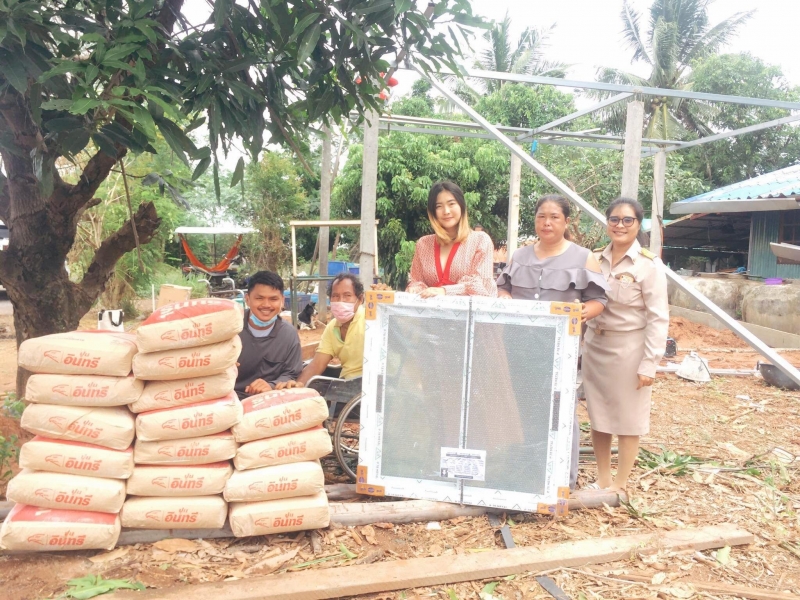 พร้อมด้วย ร้านพันชนะพาณิชย์ ร่วมบริจาคปูนอินทรีย์ จำนวน 20 ลูก หน้าต่างอลูมิเนียม จำนวน 1 ชุด
