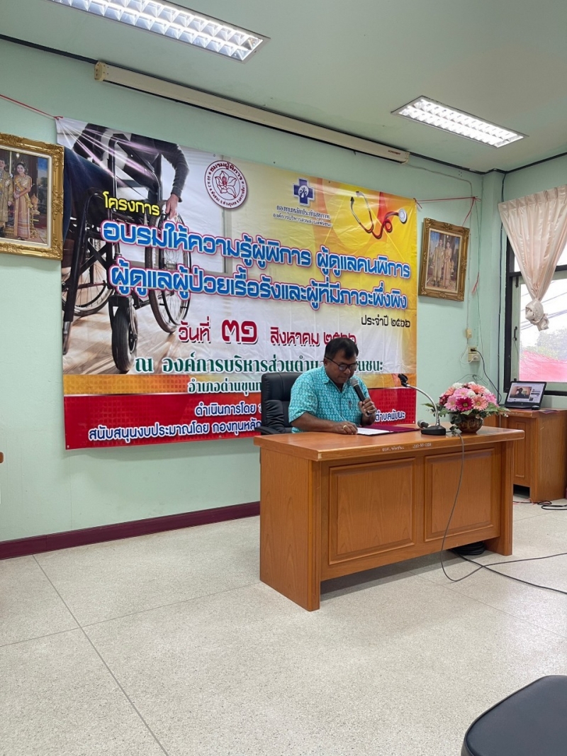 องค์การบริหารส่วนตำบลพันชนะ โดย นายจเร เสขุนทด นายกองค์การบริหารส่วนตำบลพันชนะ ประธานเปิดโครงการอบรมให้ความรู้ผู้พิการ ผู้ดูแลคนพิการ ผู้ดูแลผู้ป่วยเรื้อรังและผู้ที่มีภาวะพึ่งพิง ประจำปี 2566 ณ องค์การบริหารส่วนตำบลพันชนะ