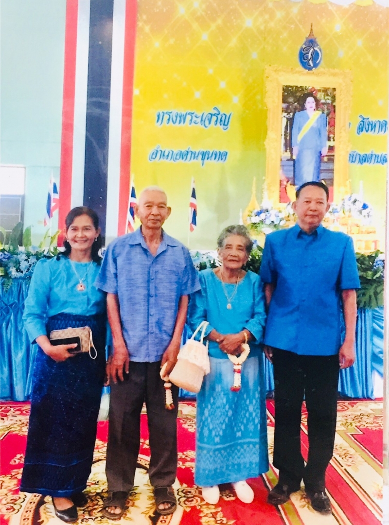 นางเชื่อม ขาวฉลาด อายุ 84 ปี บ้านเลขที่ 110 หมู่ที่ 1 บ้านพันชนะ อำเภอด่านขุนทด จังหวัดนครราชสีมา