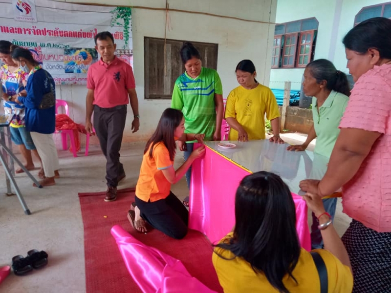 กลุ่มพัฒนาบทบาทสตรีบ้านหนองมะค่า จัดอบรมโครงการฝึกอบรมผูกผาและการจักประดับตกแต่งผ้าในงานพิธี ณ ศาลาประชาคมบ้านหนองมะค่า ตำบลพันชนะ อำเภอด่านขุนทด จังหวัดนครราชสีมา